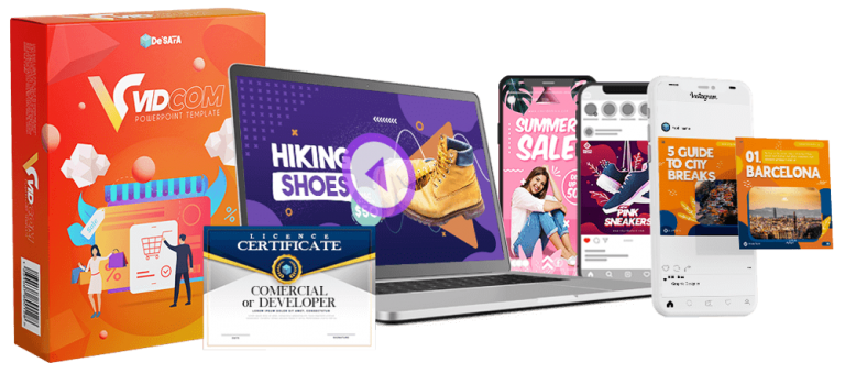 VidCom is a new collection of PowerPoint animation templates such as promotion video templates, static design templates, story templates and many more that you can use to create videos and graphics.